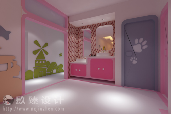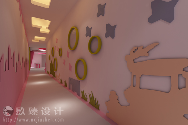 在孩子們的世界當中,眼前所有的事物都是清新和明媚的,所以,銀川镹臻裝飾設計師抓住了孩子們的心理需求,將明亮的色彩帶進他們獨有的家園。另外,大廳的吊頂則采用星星和圓形燈飾能夠創造出一個類似于星空的造型,動物和植物的相互配合,賦予整個空間無限的創造力和想象力,在此空間中足以保留每個孩子的童心。