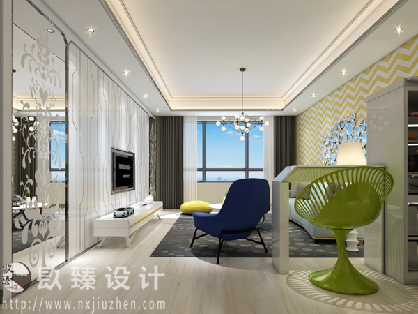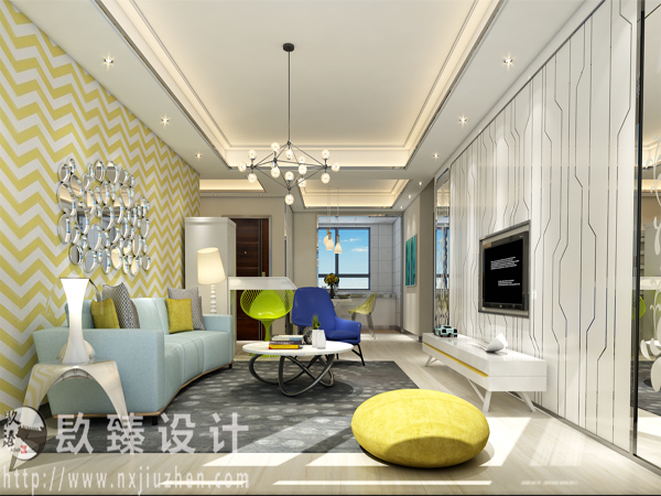 整個裝修案列中,整體以簡潔裝飾為主,通過色彩的搭配,營造一種歡快跳躍的感覺。整體的裝修顏色大多采用黃色、白色等,這類色彩飽和度較高,大膽的配色運用,讓空間具有一種跳躍感,也很好的彰顯出主人的個性化品味。