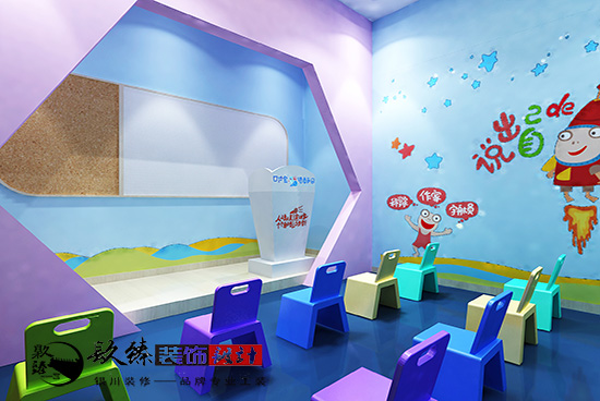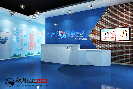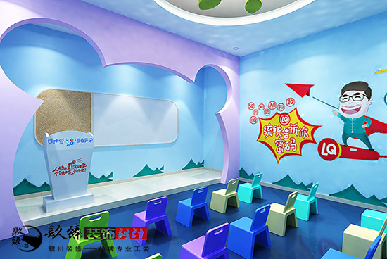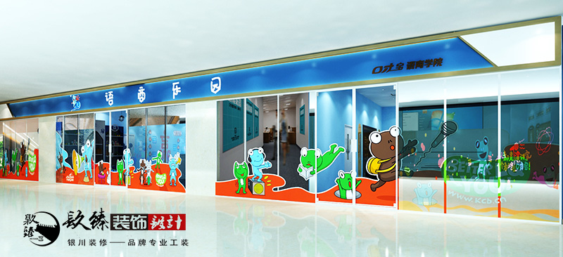 銀川裝修設計|口才寶商語樂園裝修設計原則最主要的就是要保證孩子的安全,然后就是滿足孩子和家長的習慣和學習要求。保證無污染,無噪音,適合孩子自由活動。同時幼兒園裝修需要富有童趣,色彩豐富,十分有親和力。