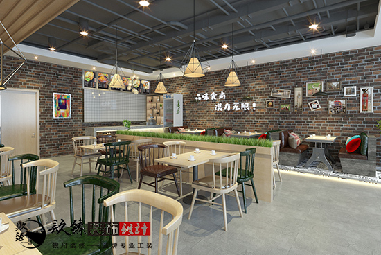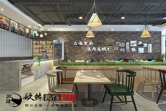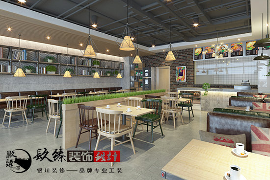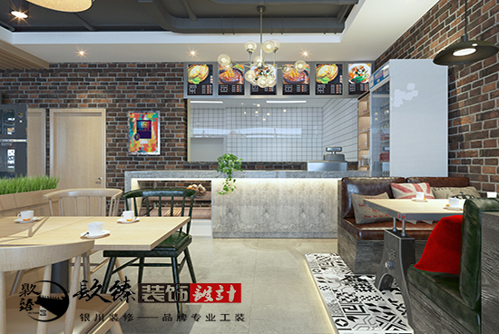 在銀川裝飾公司餐飲裝修設計案例設計中,雖然有工業風的設計,但整體更偏重于現代簡約風格。現代簡約風格最重要的一點就是從實際出發,體現的是一種消費觀,既注重生活品味,也注重合理利用空間資源等元素。