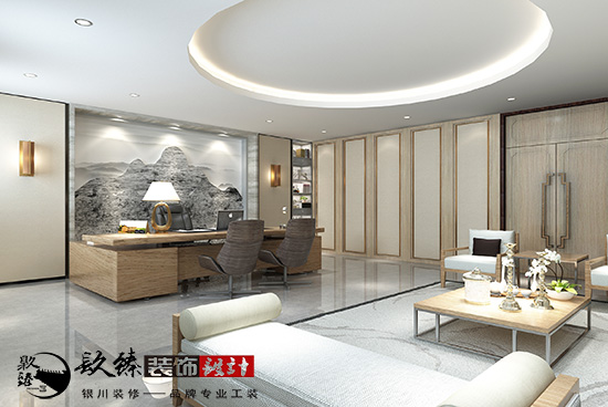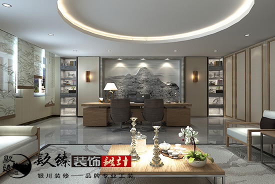 辦公室的裝修一般也體現不同行業的不同特色,本案中的汽車銷售公司辦公室運用幾何造形與線條有機結合,現代簡約主義表現手法,決定辦公空間鬧與靜的取舍。清逸起于浮世,紛擾止于內心,時尚中式家俱與靈性飾品的相配,若隱若現的禪意,將空間的靜逸發揮的淋漓盡致。