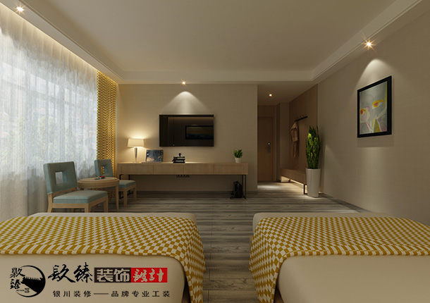 今天銀川裝修镹臻裝飾小編為大家?guī)淼木频臧咐龑儆诂F代簡約風,其裝修風格更接近原始自然,墻面多以清新的綠色和黃色做搭配,再植入一些裝飾畫進行配飾上面的搭配,簡單的基礎配色以及木質材料最終打造將該酒店以極簡主義的形式展現出來,檸檬黃在簡約風格中經常被廣泛使用,這種顏色作為點綴的效果是非常好的,其活潑靚麗感為整個房間增添了潛移默化的跳動感。