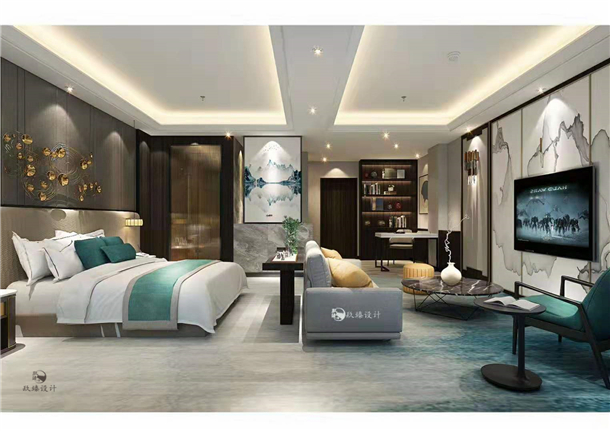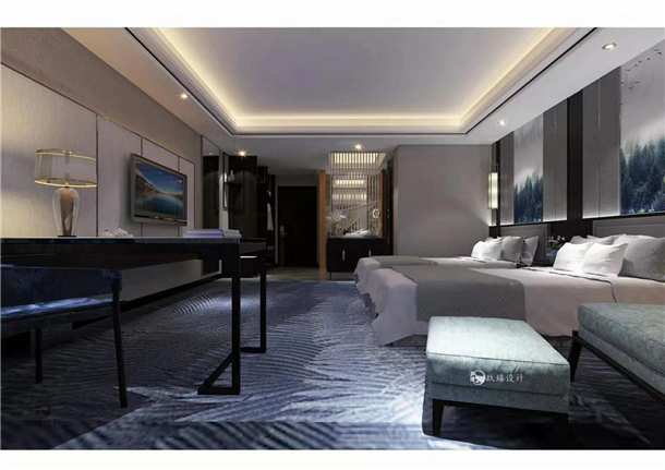 使用胡桃色木質材料作為柜體的主打色,這種顏色給人一種沉穩,低調,復古藝術的感覺,對于一些出差需要和客戶溝通的人士,該酒店是不二之選。將生活的空間進行細化,區域進行裝飾分化,客房內的簡約,高雅格調以及具有新中式古典風格的陳設營造了舒適的休閑空間。
