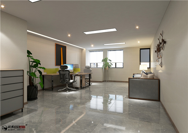 公共辦公區(qū)是辦公室的心臟,也是整個(gè)裝修設(shè)計(jì)的重點(diǎn)。設(shè)計(jì)裝修時(shí)不僅需要注重美觀性,實(shí)用性,整體性在整個(gè)裝修設(shè)計(jì)上更是重中之重。更尤為重要的是辦公區(qū)的燈光,既不能太強(qiáng)又不能太弱。 因此在設(shè)計(jì)色彩上主要以白色為基調(diào),頂部采用簡單的吊頂,并用現(xiàn)代風(fēng)格掛畫來裝飾,不僅使得整個(gè)空間顯得開闊明亮,還讓辦公空間多了一份文藝氣息。