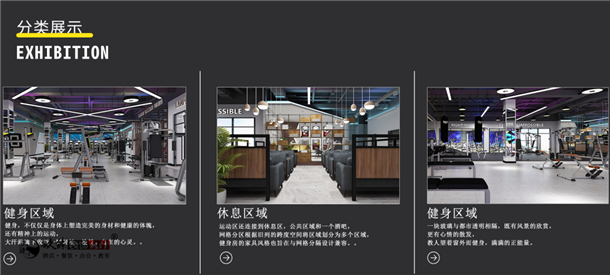 運(yùn)動區(qū)域以深色系為主,給人一種壓迫感,從而通過不斷的運(yùn)動來釋放壓力。 休閑區(qū)域就要給人一種明亮的感覺,多使用射燈和白熾燈來提升空間亮度,動感單車等區(qū)域采用彩燈來營造氣氛。練操房的整體空間比較大,給健身的人感覺很遼闊,在練操房安裝了一張大面積的鏡子,用來加強(qiáng)健身時氣氛和效果。