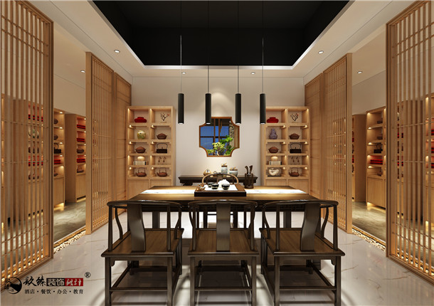 在本案茶室裝修設計中,裝修的主題需要持續(xù)不斷有所變更。茶室中的擺設,無疑增加了茶室整體的觀感。