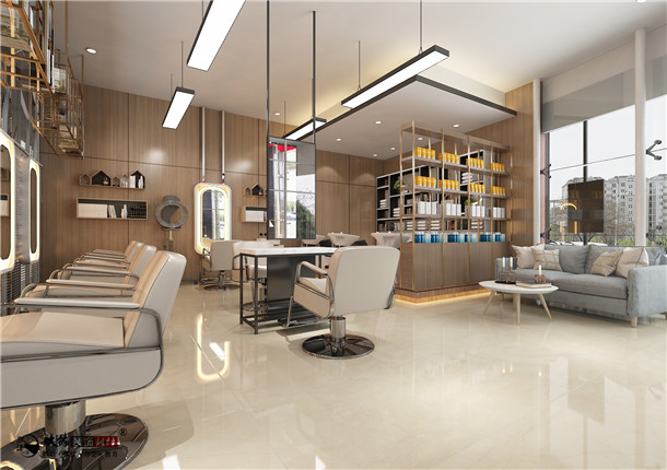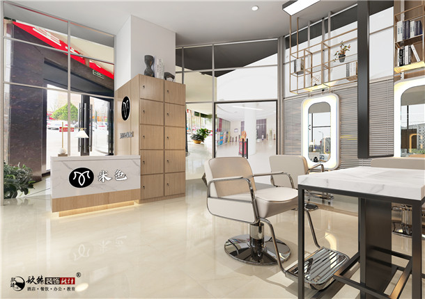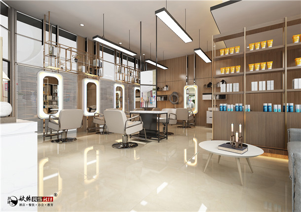 本案美發店位于銀川市寶湖東路光耀新世界商務中心一層,面積為60平米, 店面風格簡約時尚,明亮大方,美發店的燈光十分重要,要讓前來的顧客清晰的看到自己的發型,照亮自己的美。在材質上以大面積的棕木材料為背景。水磨石、鋁板等材質的組合運用,也為空間增添了整體的現代感。