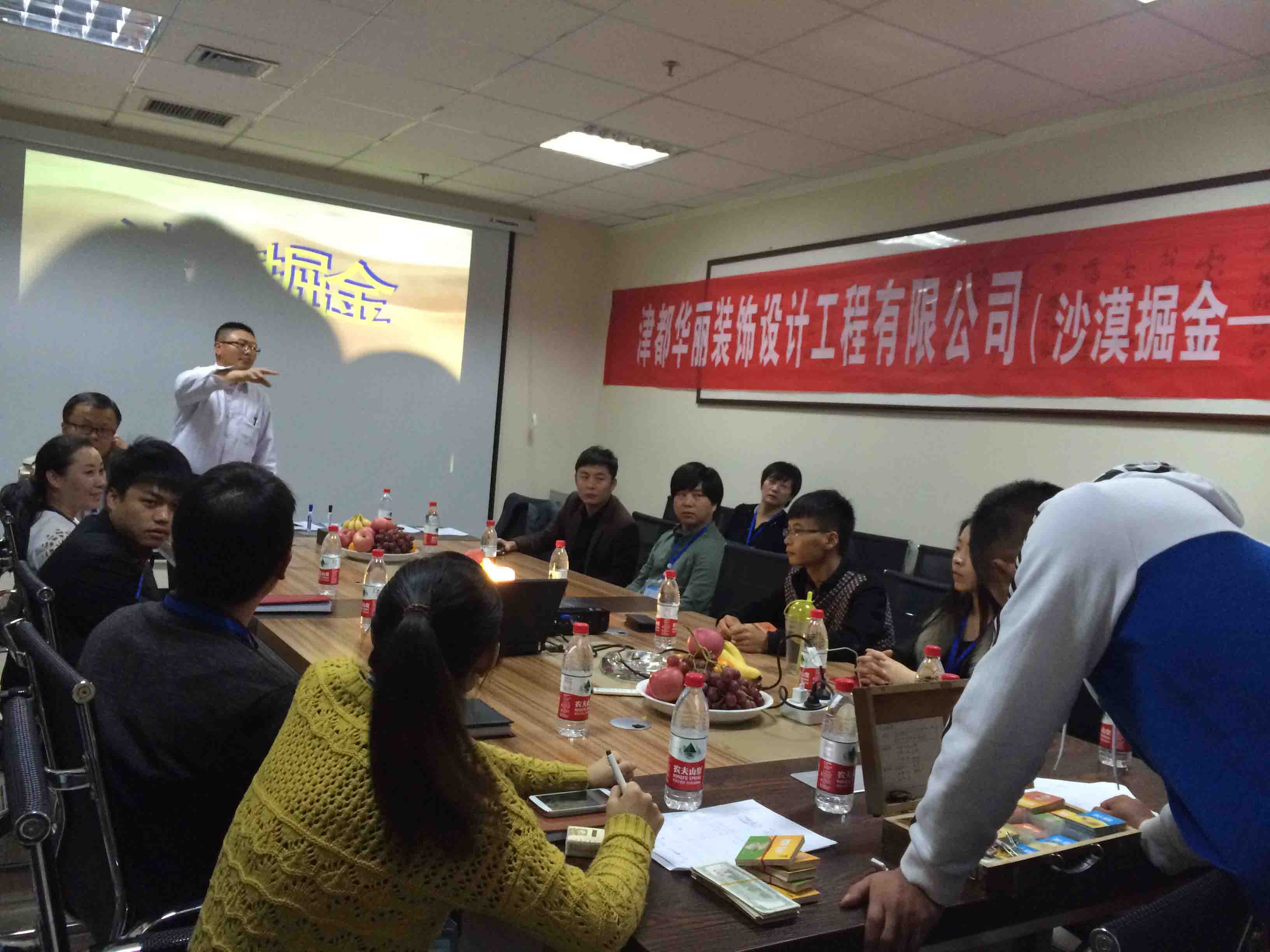 2014年11月1日銀川設計公司镹臻設計師事務所舉行了“沙漠掘金——管理者實戰經營模擬”室內培訓拓展活動,與以往傳統的培訓方式相比較,這次以模擬的方式培訓更受大家的歡迎。